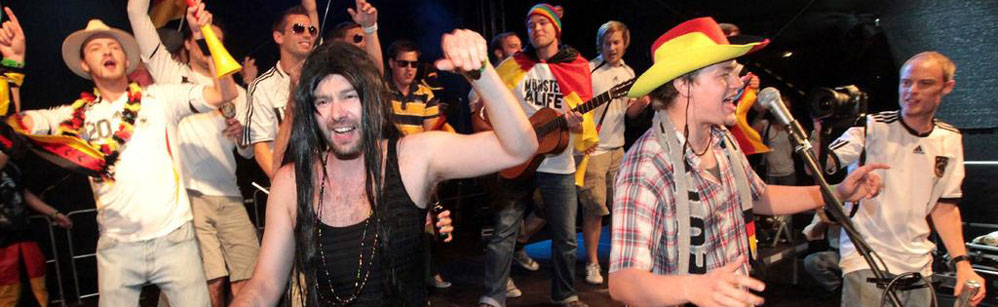 Tage zuvor: die alles-verzaubernde Lena Meyer-Landrut steht auf der großen Bühne in Oslo und performt ihren gerade zum Gewinner des Grand-Prix d’Eurovision gekürten Hit “Satellite” und ganz Deutschland freut sich über den ersten ersten Platz seit Nicole mit “Ein bisschen Frieden” 1982. Auch Christian Landgraf gehört zu der großen Gruppe der Lena-Fans. Dieser Sieg, mitten in das aufkommende WM-Fieber hineingesungen, fördert eine spontane Idee zutage: Warum nicht einfach den überall bekannten Hit “Satellite” in eine WM-taugliche Version verwandeln? Zwei Tage später dann die erste Zeile: “Schland o Schland” statt “Love o Love”!